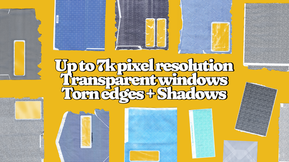 Use these cool textures to spice up your art, create collages, or just mess around with pattern creation! Each envelope was scanned at 800PPI, and most are around 8,000x6,000pixels in dimension (this varies depending on the size of the item scanned). All 12 images are unique and feature a different pattern - the 12th image is a closed envelope as a bonus! Several of the envelopes have clear plastic windows in them, which are also transparent and have a slight plastic reflection on them - making it look like anything placed beneath them are really behind a plastic window!